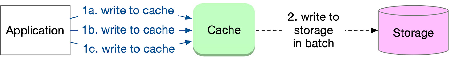 Write-Back is a caching strategy similar to write-through, with the primary difference being that write operations to the storage system are asynchronous. This approach offers improved write performance by periodically writing updated records from the cache to the storage system in batches. Write-back is often combined with read-through to provide a comprehensive caching solution. The basic workflow for write-back consists of the following steps: