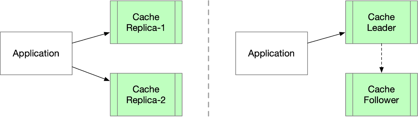 Writing to a quorum of replicas: This improved method writes to more than half of the replicas, but it introduces additional complexity and must be combined with a quorum-based read process. Generally, it is not worth implementing such a complex mechanism for cache replicas.
