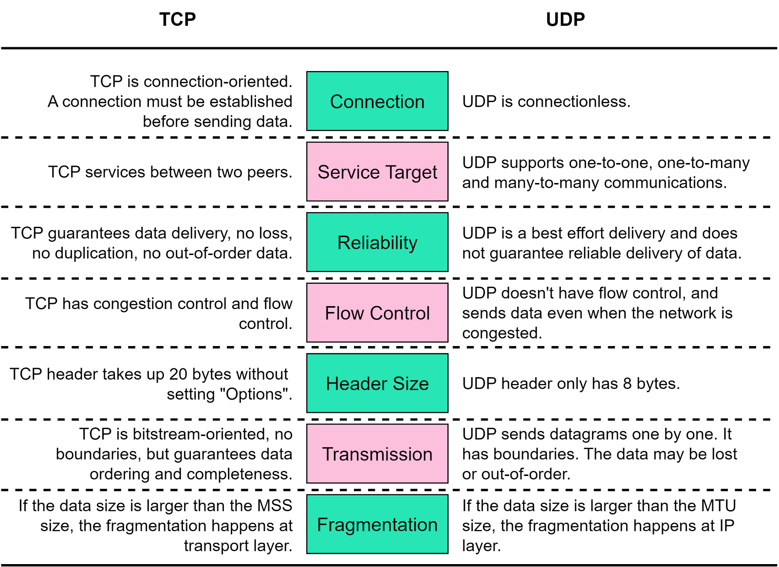 UDP doesn’t add much beyond the IP protocol. Its simplicity, however, brings certain advantages. Below is a comparison of UDP and TCP.