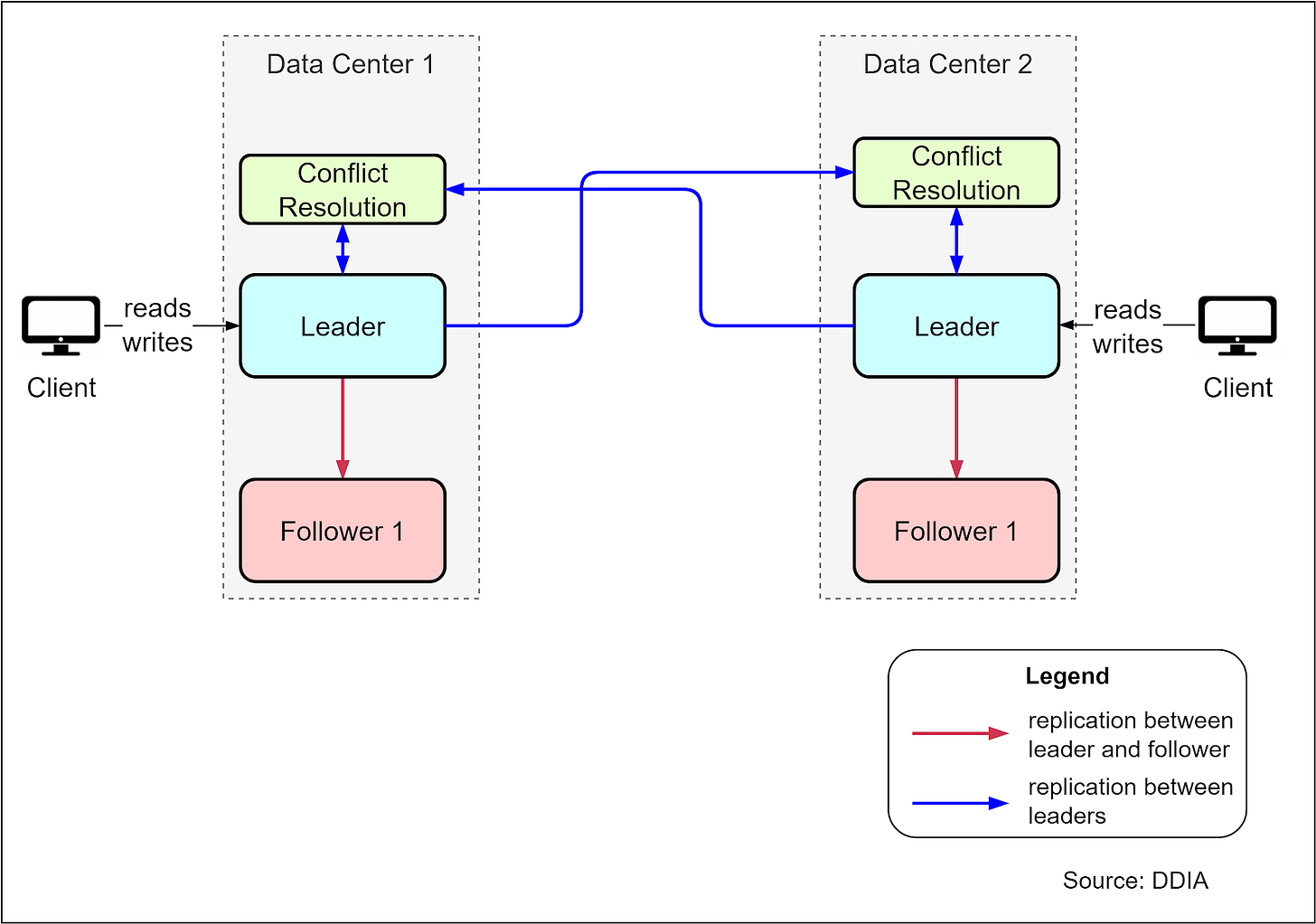 However, there needs to be an additional conflict resolution component to reconcile conflicting writes that might occur between the two leaders. This adds development effort and operational risk. The complexity of conflict resolution is a downside to weigh against the high availability benefit. Multi-leader architectures should only be considered when the high availability requirement justifies the extra complexity.