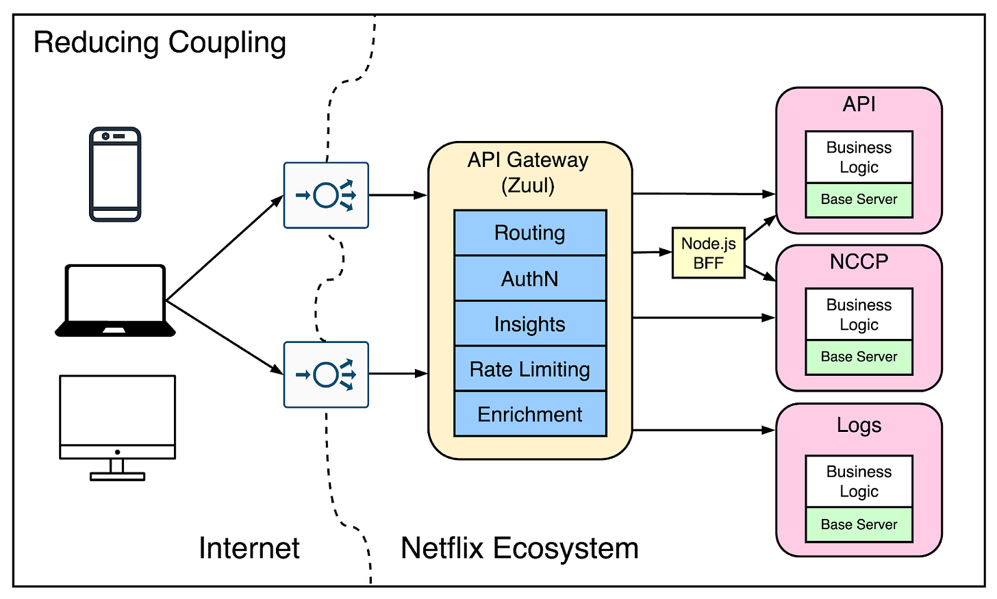 For reference, the API Gateway was called Zuul. It’s an open-source technology developed by Netflix as part of its open-source initiative. Zuul helped Netflix handle several concerns such as authentication, routing, and other customer-related routing decisions.