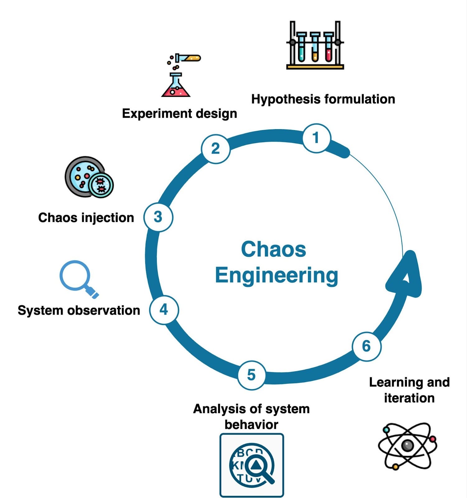 Finally, we close the loop with learning and iteration. The insights gained from our experiments inform changes and improvements to our system's infrastructure or processes. It's a repeated process of applying lessons learned to make our system more resilient against future disruptions.