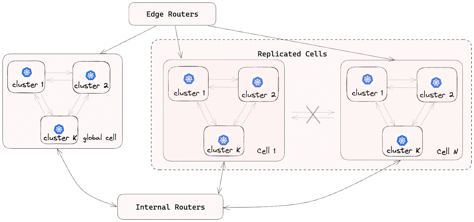 To ensure isolation between cells, no inter-cell traffic is allowed. This helps reduce the impact of a single-cell failure.