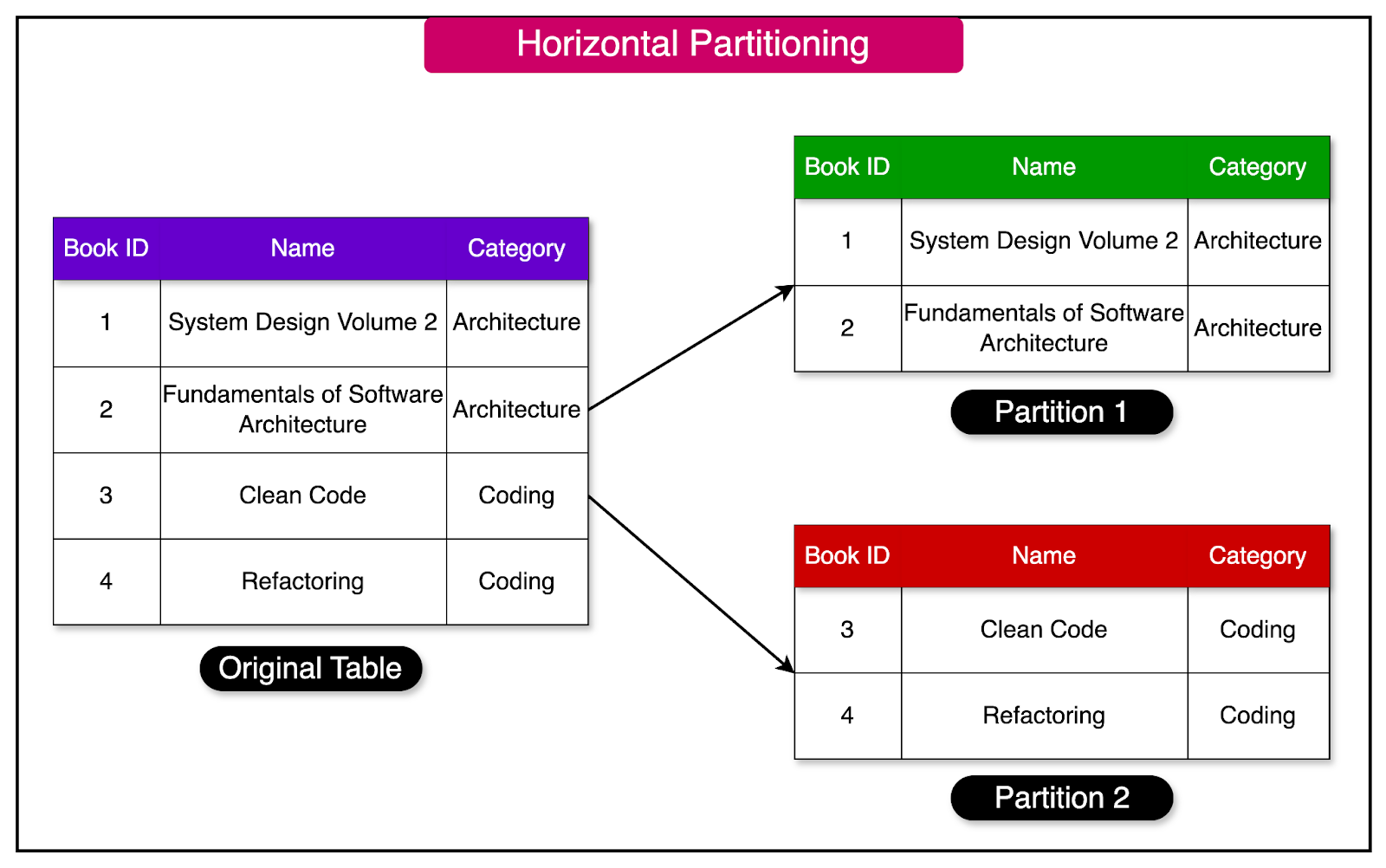Sharing builds upon the concept of horizontal partitioning, which involves dividing a table's rows into multiple tables based on a partition key. These tables are known as partitions. Distributing the data across partitions reduces the effort required to query and manipulate the data.